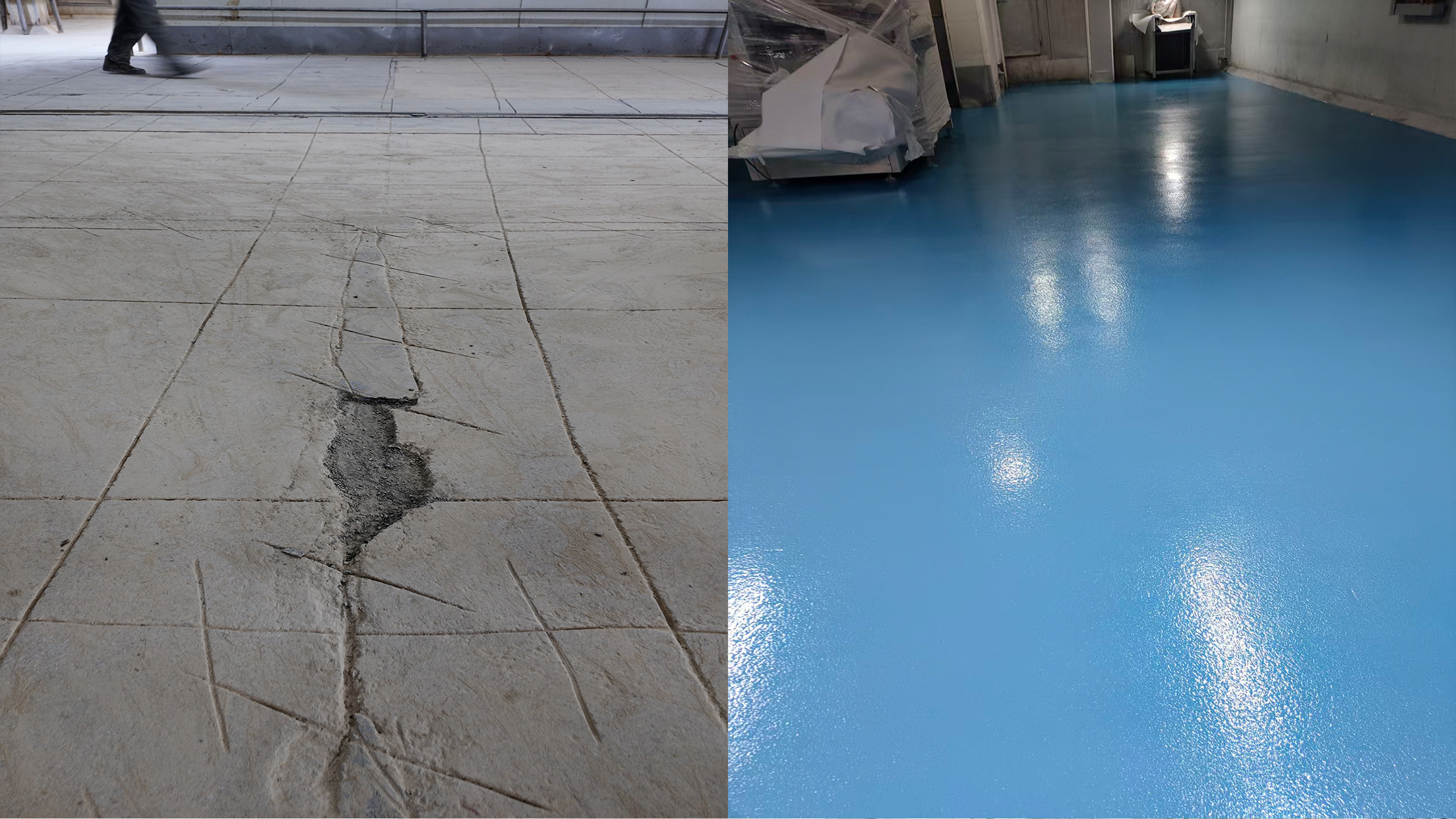 场景适配:改造后的地坪不仅满足食品车间的洁净要求,还能抵御食品油污、酸碱腐蚀,大幅降低后期维护成本,为企业长效运营提供坚实保障。