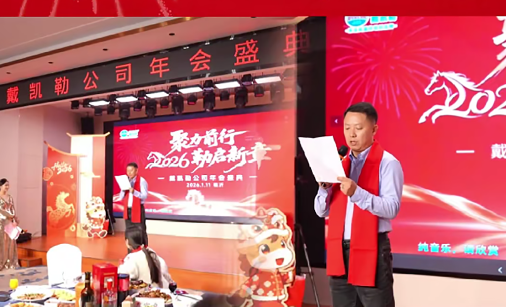 近日,戴凯勒(山东) “聚力前行,2026勒启新章”年度盛典在山东临沂海天大酒店隆重举行。公司管理层、全体员工及特邀嘉宾欢聚一堂,共同回顾硕果累累的过
