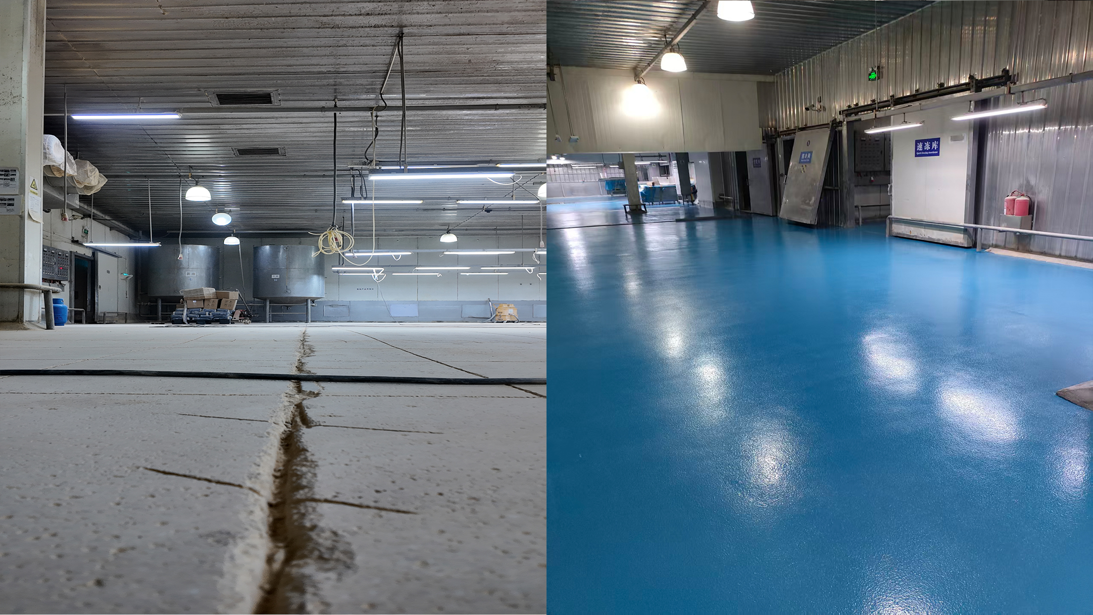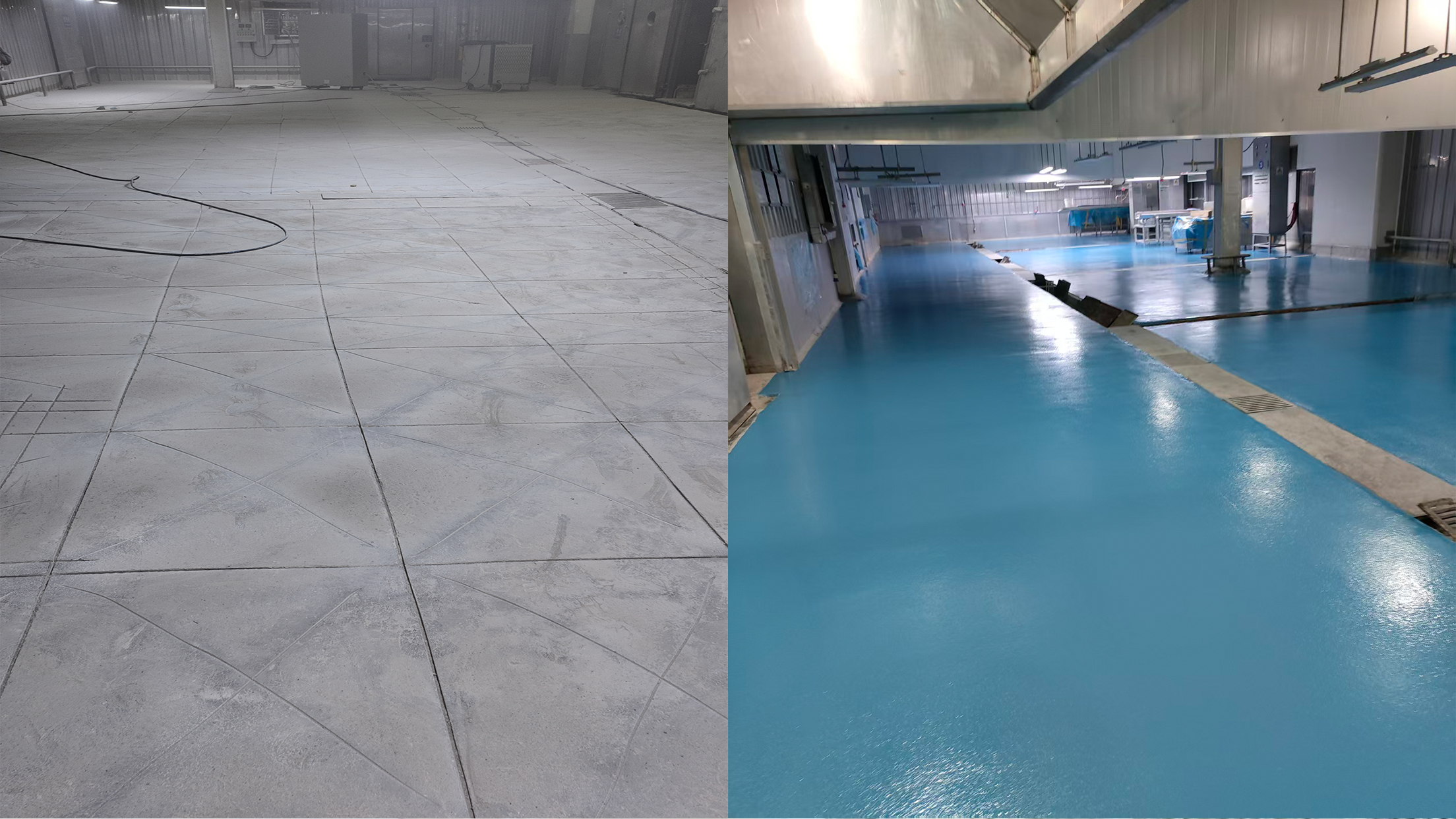场景适配:改造后的地坪不仅满足食品车间的洁净要求,还能抵御食品油污、酸碱腐蚀,大幅降低后期维护成本,为企业长效运营提供坚实保障。