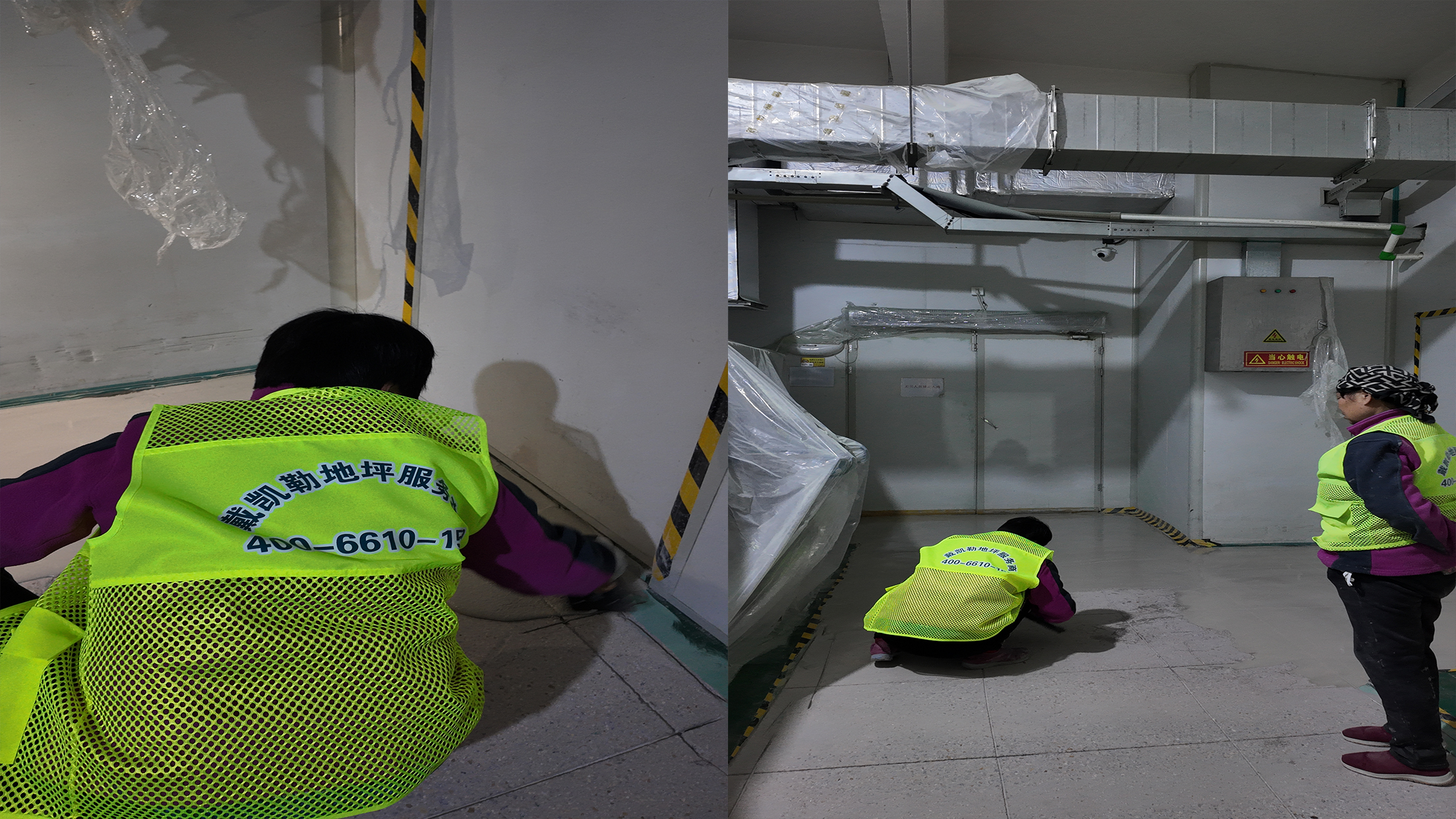 本次改造针对食品厂高湿、多油、频繁冲洗的严苛工况,采用戴凯勒水性聚氨酯砂浆系统。该系统具备食品级环保认证,耐高低温、抗酸碱腐蚀、防滑耐磨,可有效应对生产过程中的各类挑战。施工过程中,团队严格遵循英资精工标准,重点做好伸缩缝开槽与排水导流槽处理,既防止地面开裂,又能快速导走污水,从根源上解决老地面开裂、藏污、难清洁等痛点。从基面处理到砂浆摊铺,每一步都规范有序,确保改造后的地面一体成型、无缝洁净。