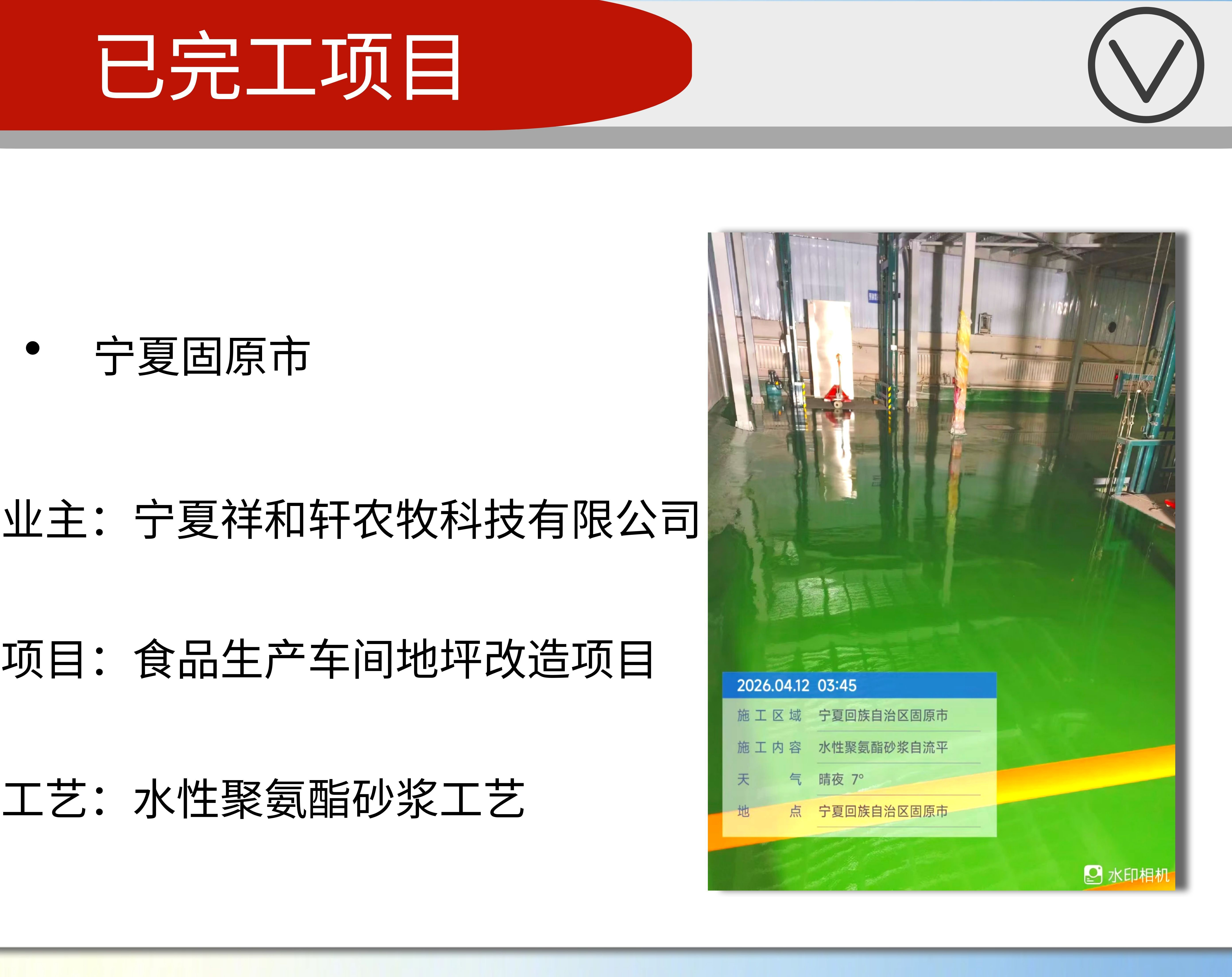 项目快讯 | 烟台亿鲜食品生产车间地坪工程(水性聚氨酯砂浆地坪工程)采用我公司产品